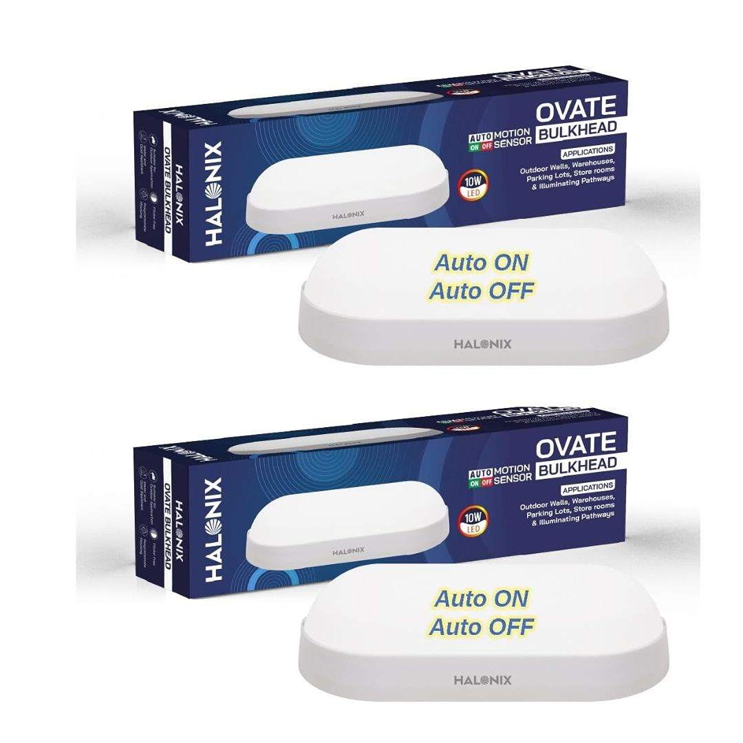 Halonix 10W Motion Sensor Outdoor Light | Auto On-Off | IP65 Waterproof Bulkhead | Porch, Garden Lamp | Cool White (Pack of 2)