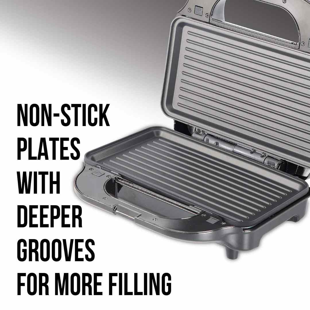 Design Features | Hinged Lock, Cool Touch Handle, Deep Grooves for Bigger Bread & More Filling |