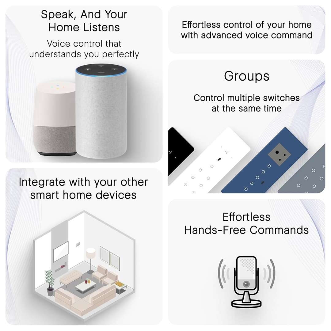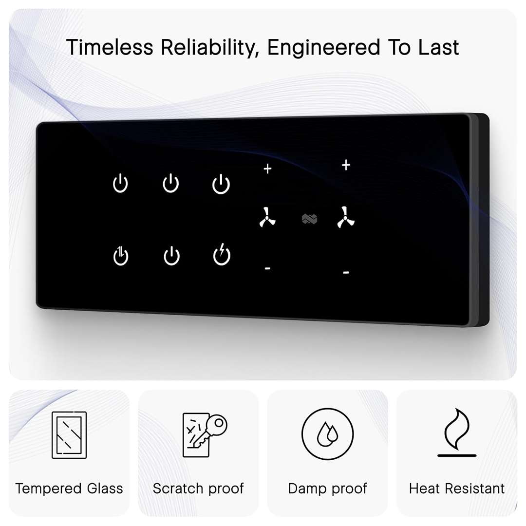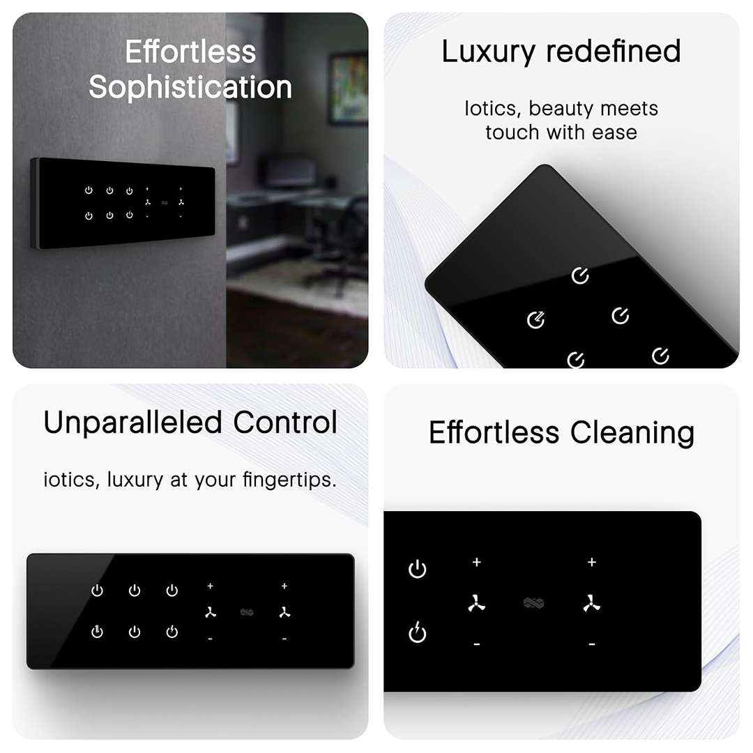 IOTICS Smart Wifi Switch Board: 6 Switches & 2 Fan Switches. Touch Control, Remote, App Control. Voice Control with Alexa & Assistant. Smart Touch Switch Board For Home Automation (Black)
