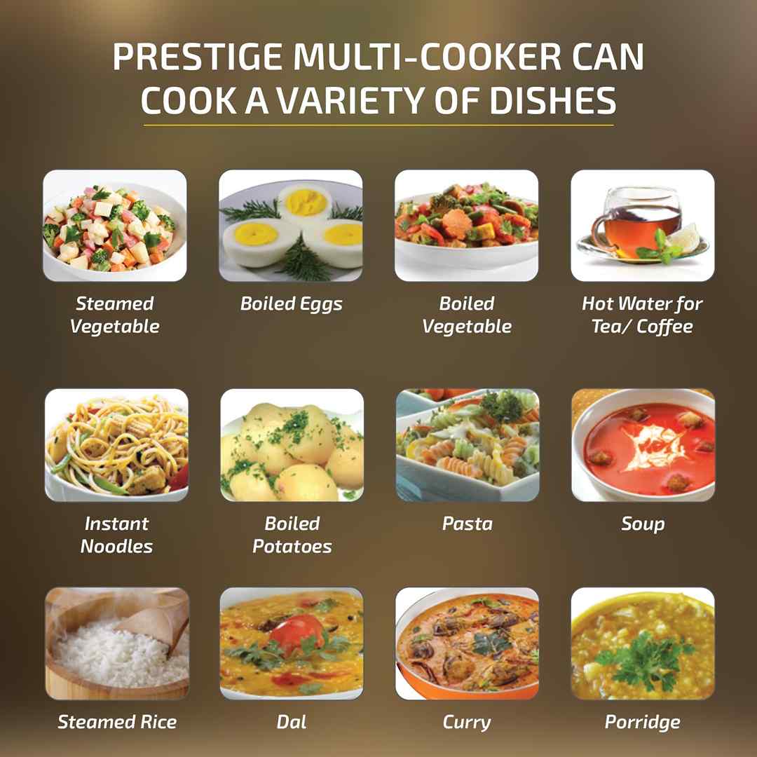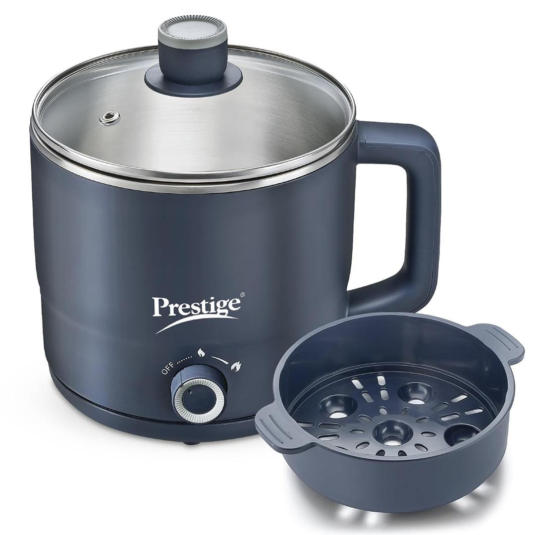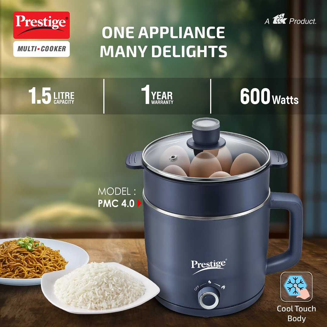 Prestige Multi-Cooker 1.5 Litre with Steamer and Egg Rack (For Egg Boiling)| Precise Temperature Control| Elegant Glass Lid| Concealed Element| 360 Degree Swivel| Cool Touch Handle| PMC 4.0