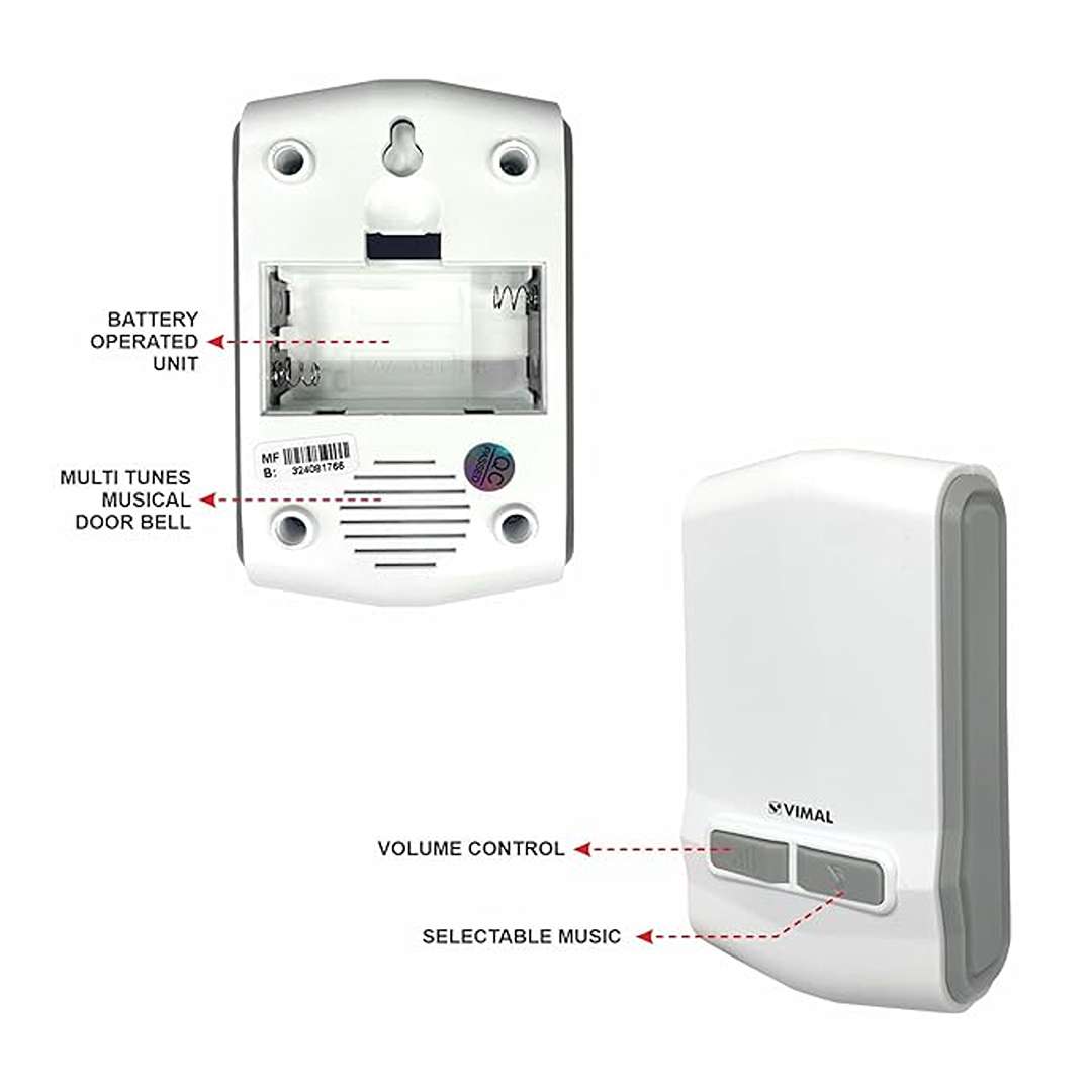 The VIMAL Wiring Devices Multitune Wired Musical Door Bell (Model B53) combines style, durability, and performance. Made from premium polycarbonate, it features multiple selectable tunes, a flashing light indicator, and a high-volume speaker for clear, pleasant sound. Easy to install on existing wiring, this battery-operated doorbell is ideal for homes, offices, and hotels, offering long life, low power consumption, and elegant design.