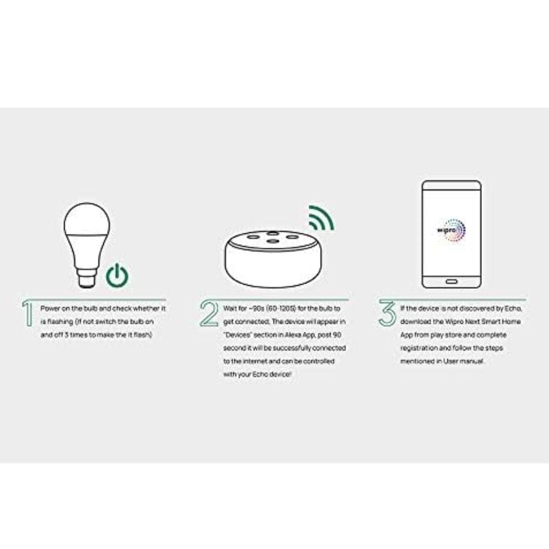 wipro NS9200 B22D Wi-Fi Enabled Smart LED Bulb for Amazon Alexa & Google Assistant (9W, White) | Pack of 2