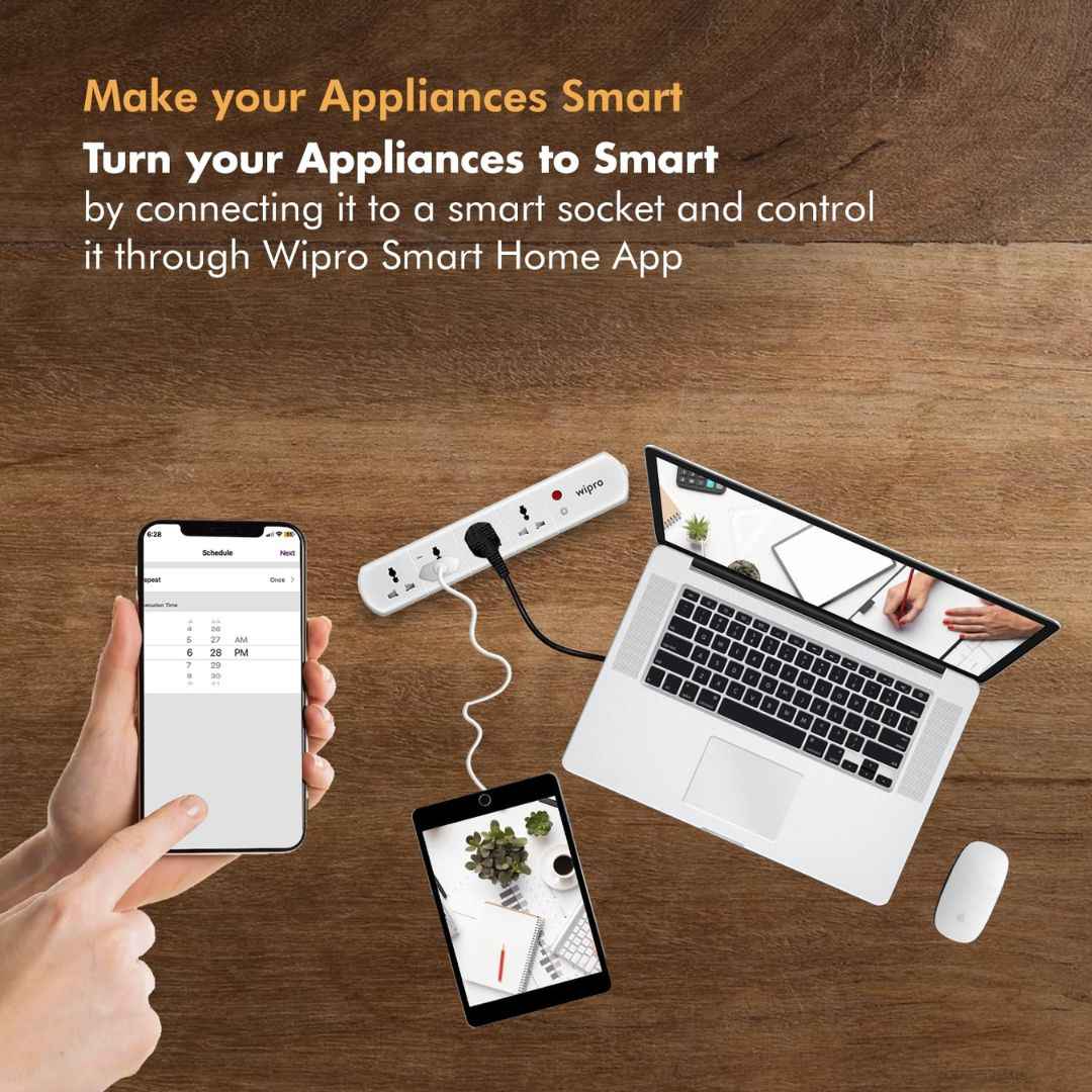 The Wipro Smart Extension Board (Model: DSE2150) transforms your ordinary devices into smart appliances. With features like Wi-Fi connectivity, voice control (Alexa & Google Assistant), scheduling, energy monitoring, and remote access via the Wipro Next Smart App, you can control and automate your devices from anywhere. Its smart grouping feature and real-time energy tracking offer both convenience and efficiency, while the sleek design complements any modern home. Backed by a 6-month warranty, this smart extension is a step forward in creating a truly connected, energy-conscious home.
