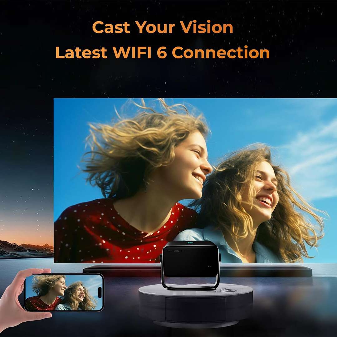 WZATCO Yuva Vibe, Smart Home Projector 4k Ultra HD, Native 1080P Fully Automatic, HDMI ARC, WiFi 6 & BT, Screen Mirroring, Portable Room Cinema, Black