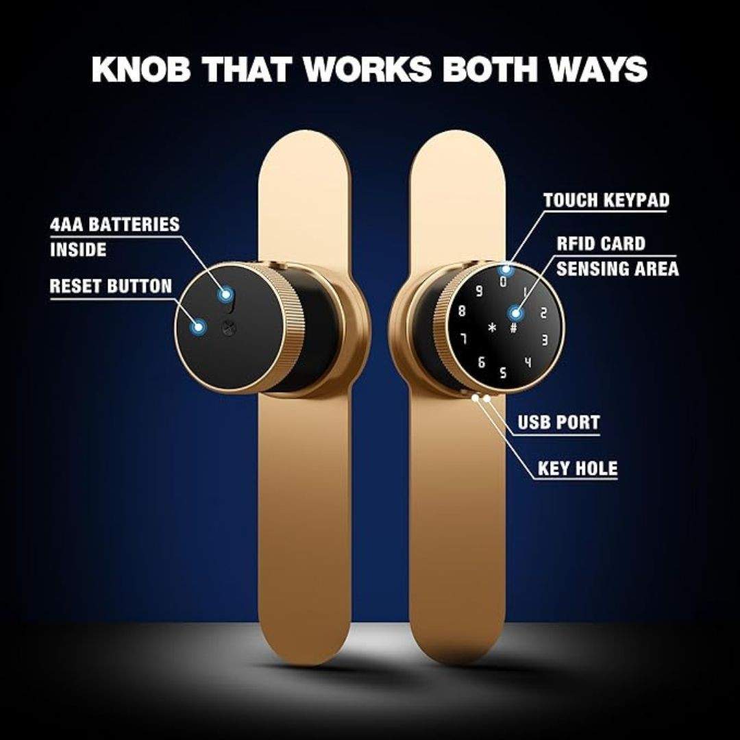 The Ozone OZ-FDL-11-P-Life Smart Digital Lock is a robust, biometric stainless steel lock designed for enhanced security and convenience. Featuring a fingerprint scanner, Bluetooth connectivity, and app control, this easy-to-install lock combines modern technology with a stylish antique bronze finish. Ideal for securing doors with a sleek, round design and glossy finish, it includes all necessary components for quick setup. (NO INSTALLATION)