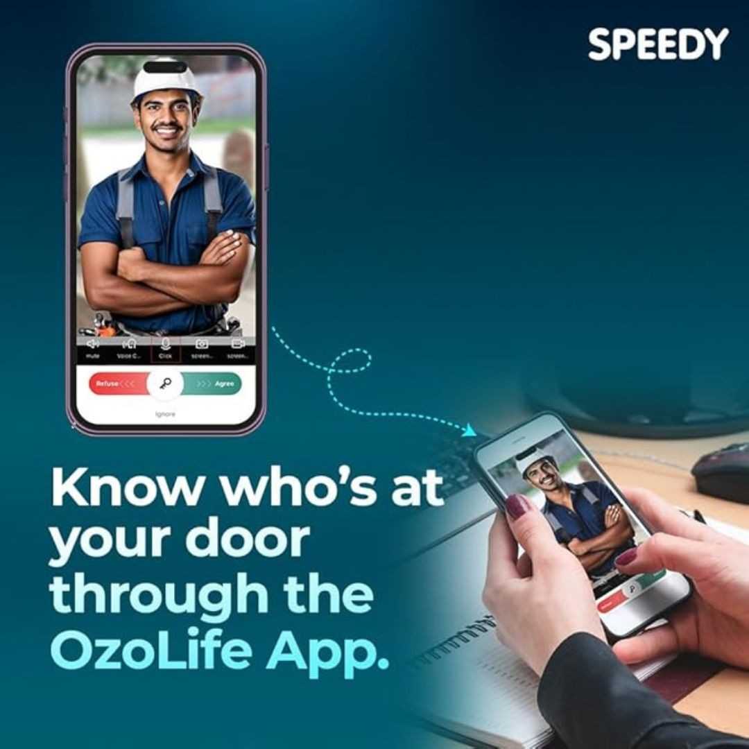 The SPEEDY ATOM - i is a smart biometric door lock designed for indoor use, featuring fingerprint access, RFID, keyless entry, and app control via Android and iOS. With a sleek, glossy black finish and built-in camera, this lock fits doors 35–80mm thick. It offers secure, high-tech functionality with Wi-Fi connectivity and is made from durable alloy steel. (NO INSTALLATION)