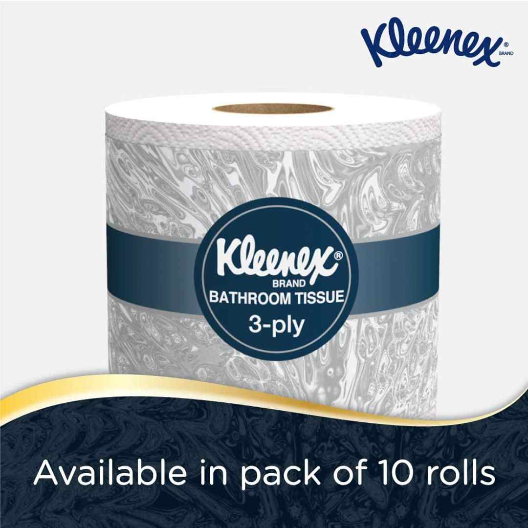 Experience premium hygiene and comfort with Kleenex 3-ply toilet paper made from 100% virgin fibre. Each pack includes 10 individually wrapped rolls, with 240 sheets per roll (2400 sheets total). These flushable, clog-free, and septic-safe tissues are FSC-certified and fit standard dispensers, making them ideal for both home and workplace use.
