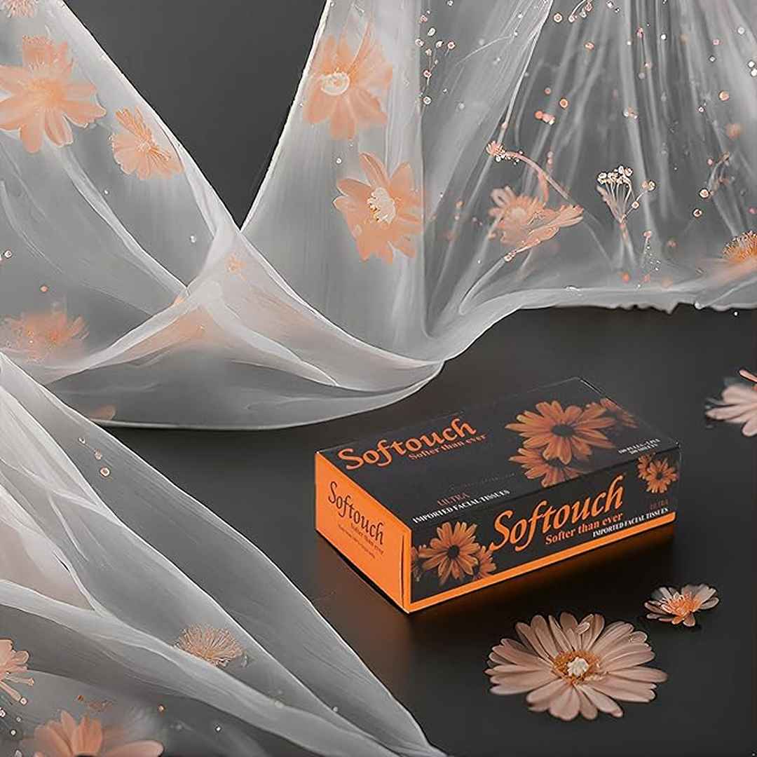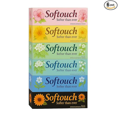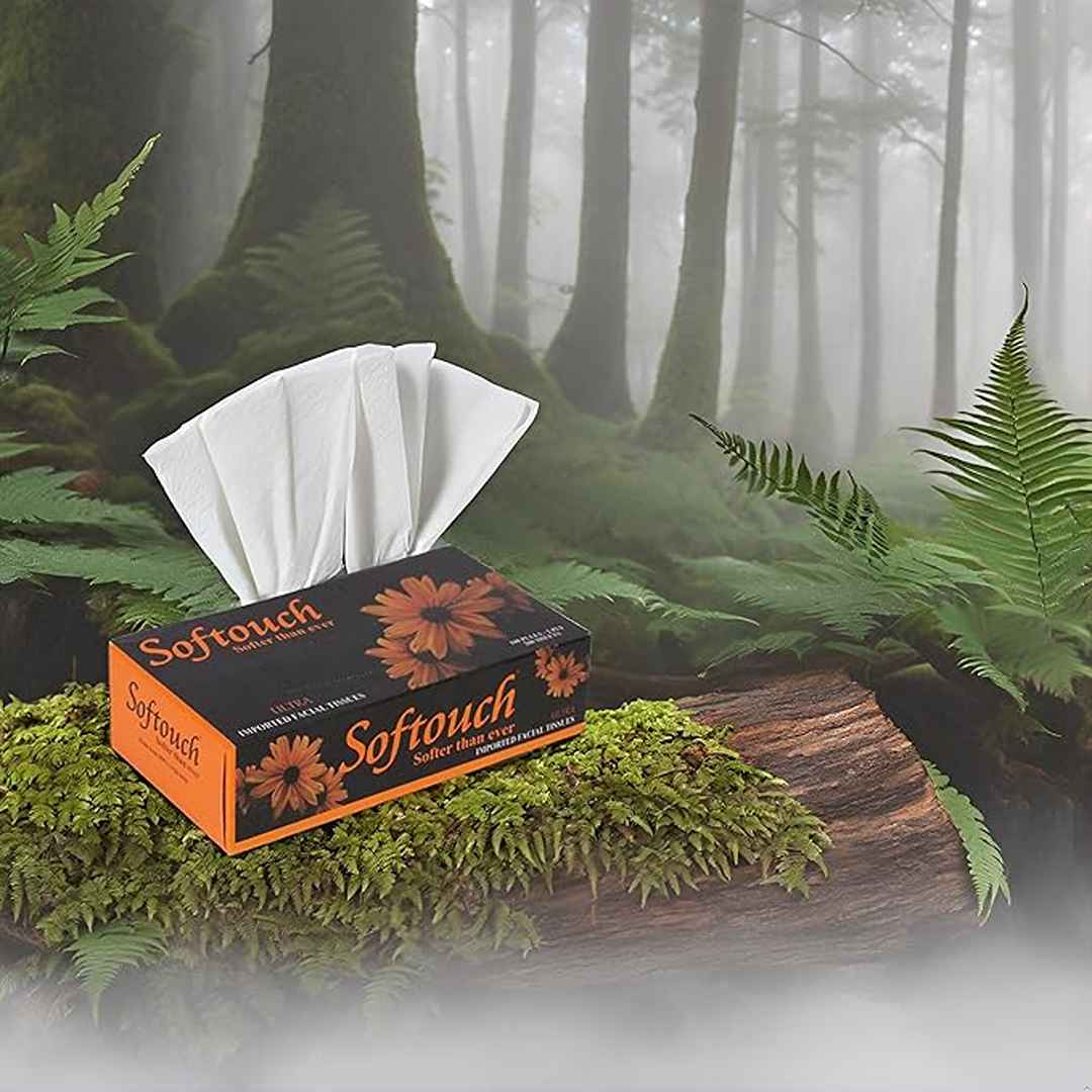 Softouch Facial Tissue Box (2-Ply, 600 Sheets) offers ultra-soft, highly absorbent tissues made from 100% cellulose fiber. Free from inks, dyes, and harsh chemicals, these multipurpose tissues are safe for skin, makeup removal, and everyday hygiene, with stylish packaging to suit any setting.