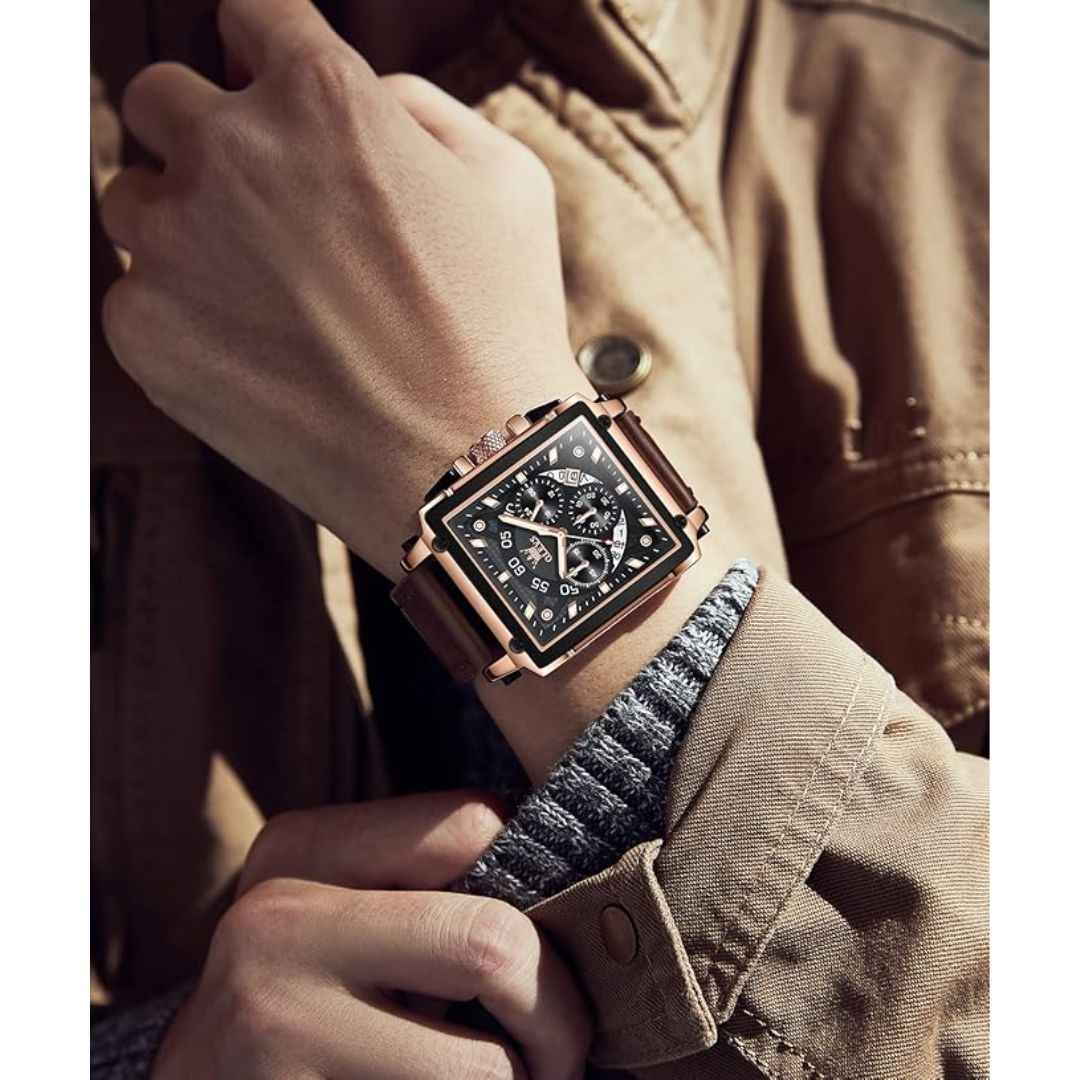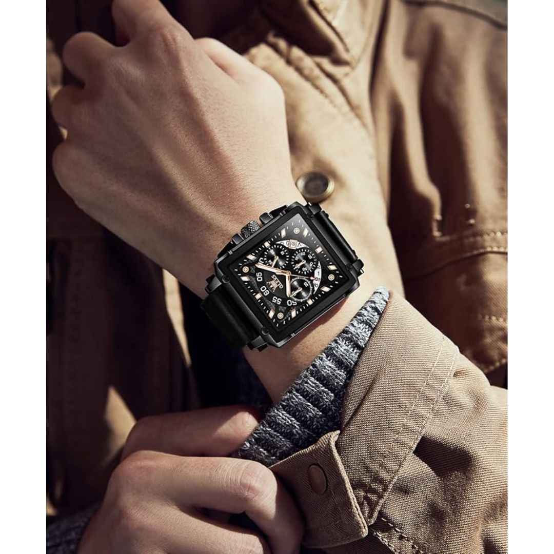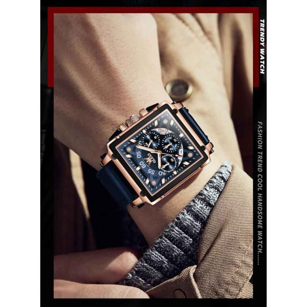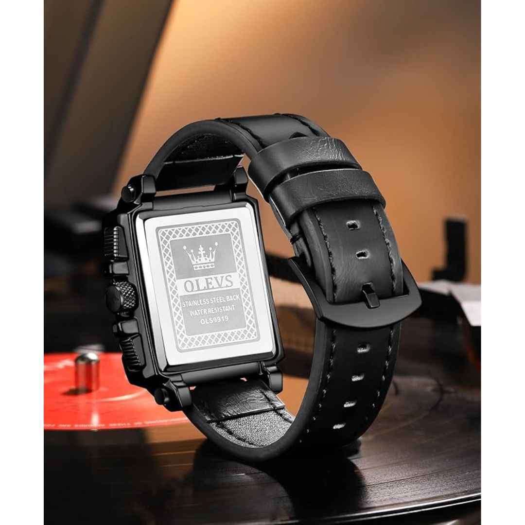 The OLEVS Men's Square Quartz Watch blends modern elegance with practical features. Featuring a stylish square dial, genuine leather strap, and multifunction chronograph, it is ideal for both business and casual settings. Powered by a reliable quartz movement, this watch offers a 2-3 year battery life, dual time display, luminous hands, and 3ATM water resistance. Whether for daily use or gifting, it comes in premium packaging—making it a perfect present for Diwali, weddings, or corporate milestones.