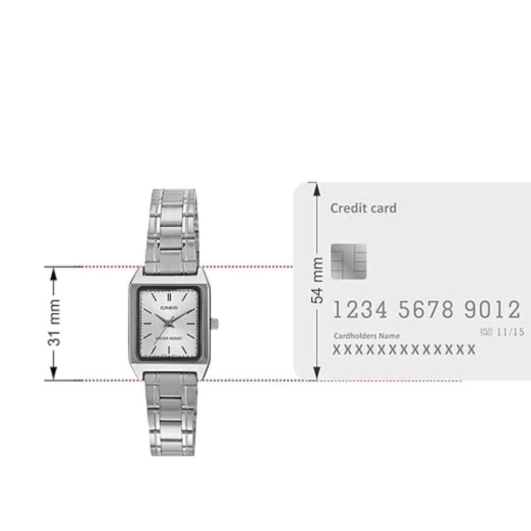 The Casio LTP-V007D-7EUDF is a sleek and elegant women’s dress watch, designed with a classic silver dial and stainless steel strap. Featuring a chrome-plated case, quartz movement, and a triple-fold clasp, this watch balances timeless style with reliable functionality. Its lightweight construction and refined design make it ideal for formal and everyday wear. With water resistance and a compact 22mm case, it’s a perfect minimalist accessory for women seeking sophistication in simplicity.