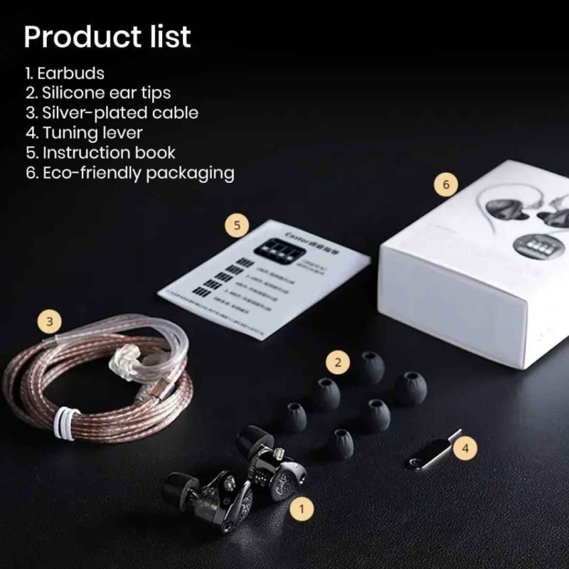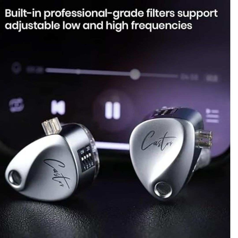 The KZ Castor In-Ear Monitor (IEM) from Concept Kart offers a cutting-edge dual dynamic driver setup, combining a 10mm dual-magnetic driver and an 8mm driver in a stacked cavity for precise, immersive sound. With 16 customizable sound profiles via four tuning switches and availability in two versions (Harman Target and Harman Target with Enhanced Bass), this IEM ensures flexibility and fine-tuned audio for every listener. It includes a detachable 0.75mm 2-pin high-purity cable, ergonomic silicone ear tips, and precision-built acoustic components for unmatched sound isolation and performance—ideal for studio monitoring and entertainment.