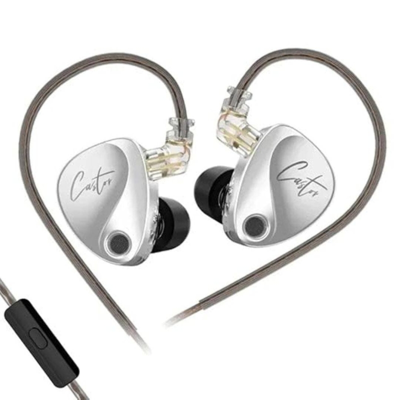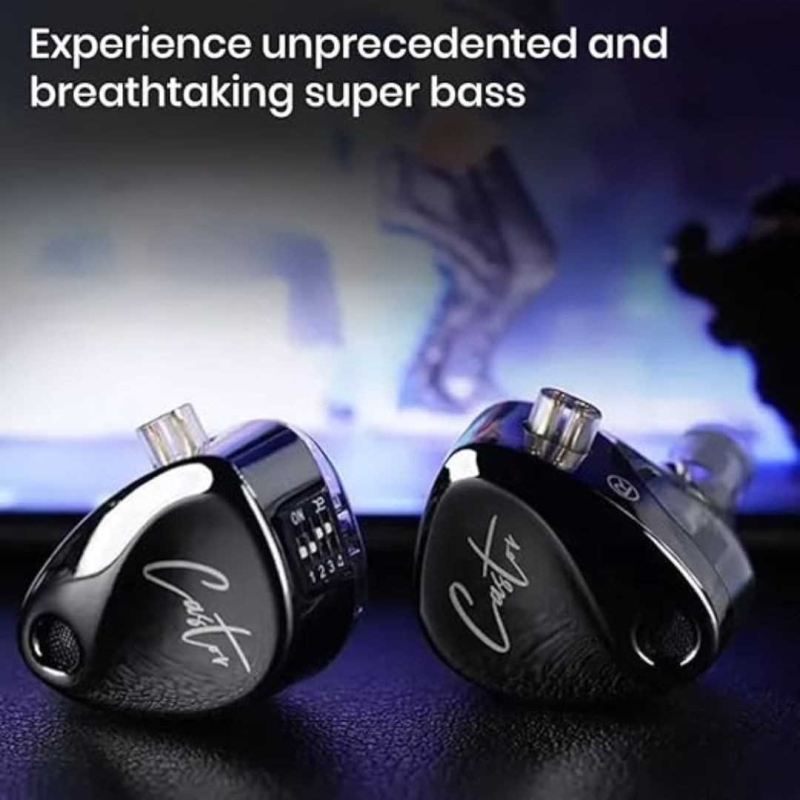 The KZ Castor In-Ear Monitor (IEM) by Concept Kart is a premium audio solution designed for audiophiles and professionals. Featuring dual dynamic drivers (10mm dual-magnetic + 8mm) in a stacked configuration, it delivers exceptional clarity, deep bass, and precise highs. With 4 tuning switches, users can personalize their listening experience across 16 sound profiles, making it ideal for diverse music genres. The detachable 0.75mm 2-pin cable, ergonomic design, and 3D precision injection molding ensure superior durability, noise isolation, and comfort. Available in Harman Target tuning with enhanced bass.