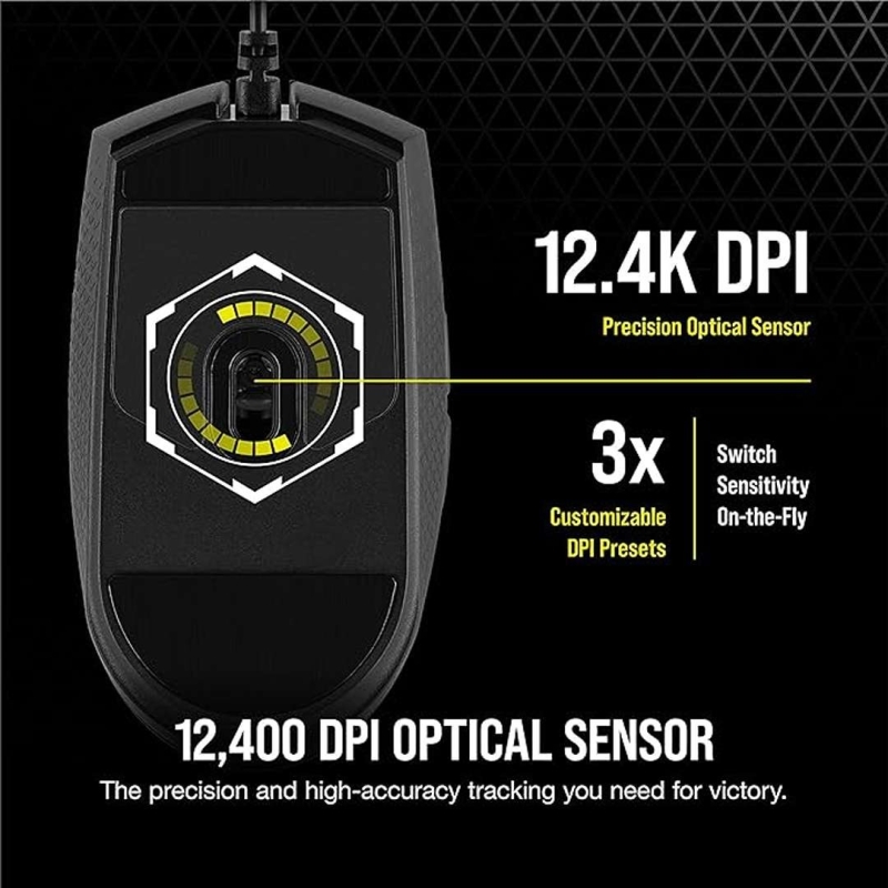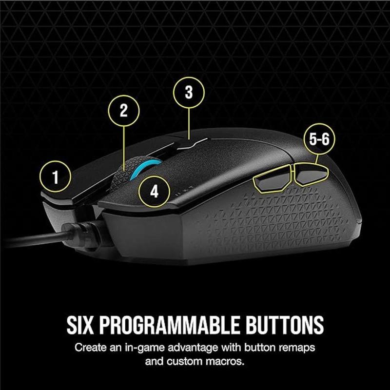 The Corsair Katar Pro Wired Gaming Mouse is an ultra-lightweight, high-precision mouse built for fast-paced FPS and MOBA gaming. Featuring a 12,400 DPI PixArt optical sensor, six programmable buttons, and a compact ambidextrous design, it delivers speed, accuracy, and comfort with simple plug-and-play USB connectivity.