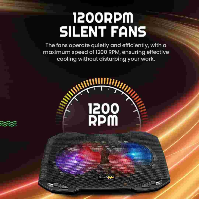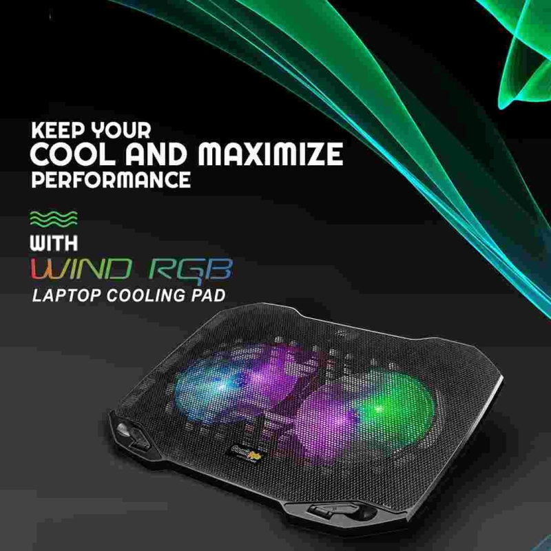 The Cosmic Byte Wind RGB Laptop Cooling Pad is a compact and efficient cooling solution designed for laptops up to 15.6 inches. Equipped with dual 120 mm RGB fans, it delivers optimized heat dissipation while maintaining ultra-low noise levels. The elevated stand improves viewing comfort, anti-skid mats ensure stability, and the built-in USB port adds extra connectivity—making it ideal for gaming, work, and everyday use.