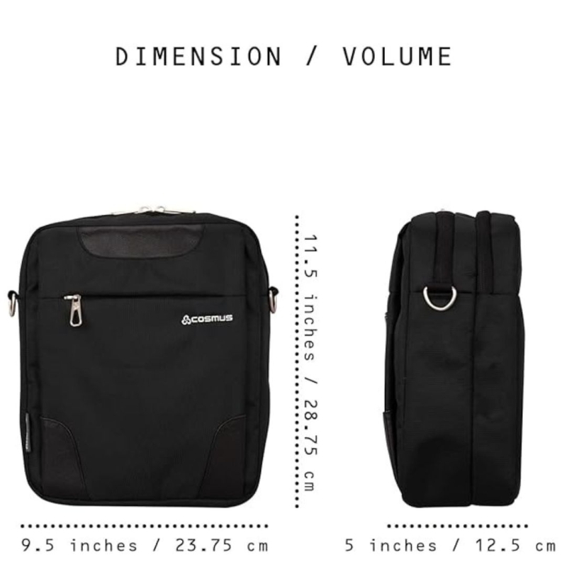 This premium utility-style crossbody sling bag from COSMUS is designed for 10-inch tablets and iPads. Made from durable PU-coated polyester fabric with water resistance, it features a cushioned tablet compartment, multiple zipper pockets, and an adjustable nylon strap for comfortable carrying. Lightweight yet sturdy, it offers 4 litres of capacity—ideal for everyday use, travel, and casual outings.