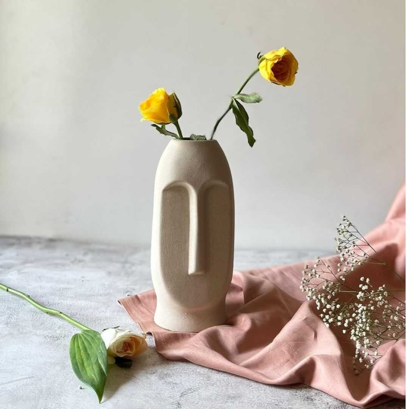 The Craftribal Black Ceramic Face Vase is a stylish, classic décor piece featuring a unique abstract face design with a matte textured finish. Perfect for bedrooms, living rooms, or home offices, it can be used as a tabletop or floor accent. Made from durable ceramic, it adds a sophisticated artistic touch to any interior.