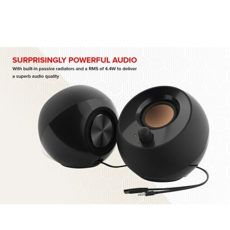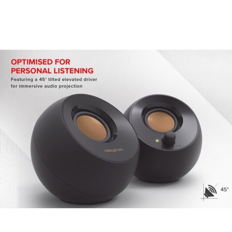 The Creative Pebble V2 is a compact and stylish 2.0 USB-powered desktop speaker designed for laptops and computers. It features custom-tuned drivers with rear-facing passive radiators for enhanced bass, 45° elevated drivers for better sound projection, and easy front-facing volume controls. With modern aesthetics, USB connectivity, Bluetooth support, and a waterproof build, it’s ideal for home, office, and workspace use.