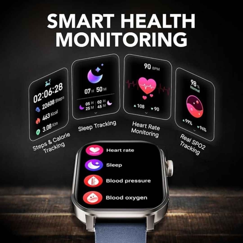 | Health Tracking | Heart Rate, SpO₂, Steps, Calories, BMI |