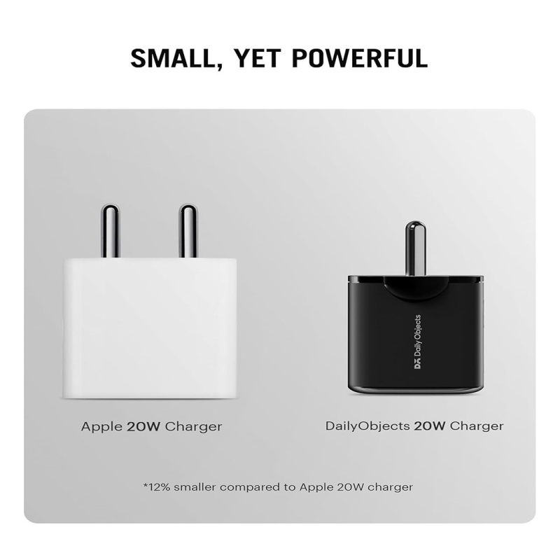 The DailyObjects SURGE™ 2 Port 20W GaN Charger is a compact and travel-friendly fast charger designed for modern devices. Powered by GaN technology, it delivers efficient and reliable charging in a lightweight form factor. With USB-C Power Delivery (20W) and USB-A fast charging (18W), it intelligently shares power to charge multiple devices safely and efficiently, making it ideal for smartphones, tablets, smartwatches, and more.