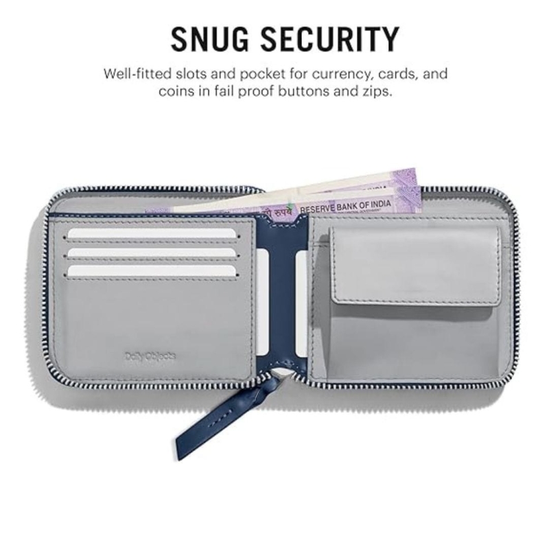 This ultramarine blue zip-around wallet from DailyObjects is crafted from premium vegan faux leather, offering a sleek and modern design. With 9 compartments, 3 pockets, and 8 card slots, it provides ample, organized storage in a slim profile. Handcrafted in India, it’s stylish, functional, and perfect for everyday use.
