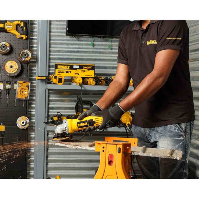 The DEWALT DW810-IN 750W Angle Grinder is a compact, lightweight, and powerful corded tool designed for efficient grinding and cutting tasks. With a slim body, sealed toggle switch, and high-speed performance, it ensures comfortable handling, durability, and reliable operation even in tight spaces.