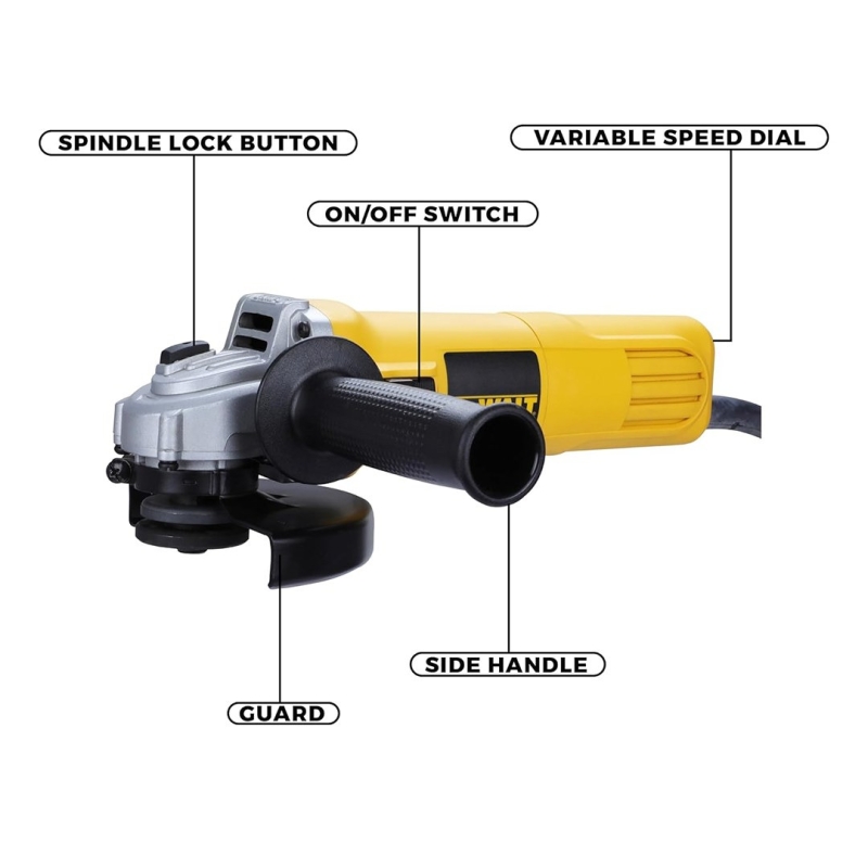 The DEWALT DWE4119 950W Angle Grinder is a powerful, lightweight, and durable tool designed for efficient grinding and cutting applications. With variable speed control, optimized motor performance, and enhanced brush life, it delivers reliable operation and comfortable handling for both professional and heavy-duty use.