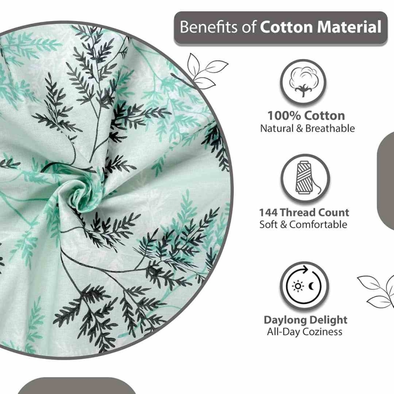 Experience soft, breathable comfort with the Divine Casa Single Cotton Bedsheet, crafted from 100% cotton with a 144 thread count for everyday luxury. Designed in a refreshing Blue Mint floral pattern, this bedsheet adds a soothing charm to your bedroom decor. It comes with a matching pillow cover and offers long-lasting durability, fade resistance, and easy machine-wash maintenance—ideal for personal use or gifting.