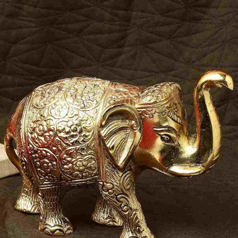 This elegant DreamKraft metal elephant idol features a luxurious gold finish and an art-decor design, making it a charming décor piece for homes, offices, and gifting. Compact, durable, and symbolizing wisdom and strength, it adds a touch of cultural richness to any space.