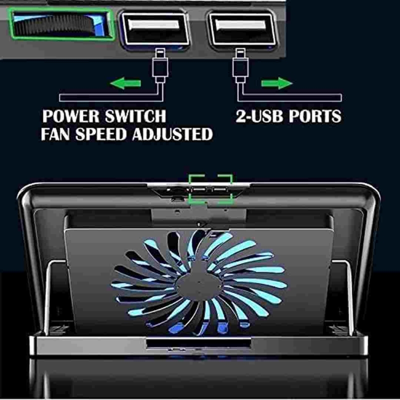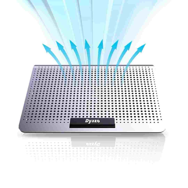 The Dyazo Aluminium Laptop Cooling Pad is designed for efficient and ultra-silent cooling with a single high-performance fan. Featuring an aluminium top cover for superior heat absorption, dual USB ports, and 7 adjustable height settings, it provides a stable, ergonomic, and heat-resistant surface that enhances laptop performance and comfort during extended use.
