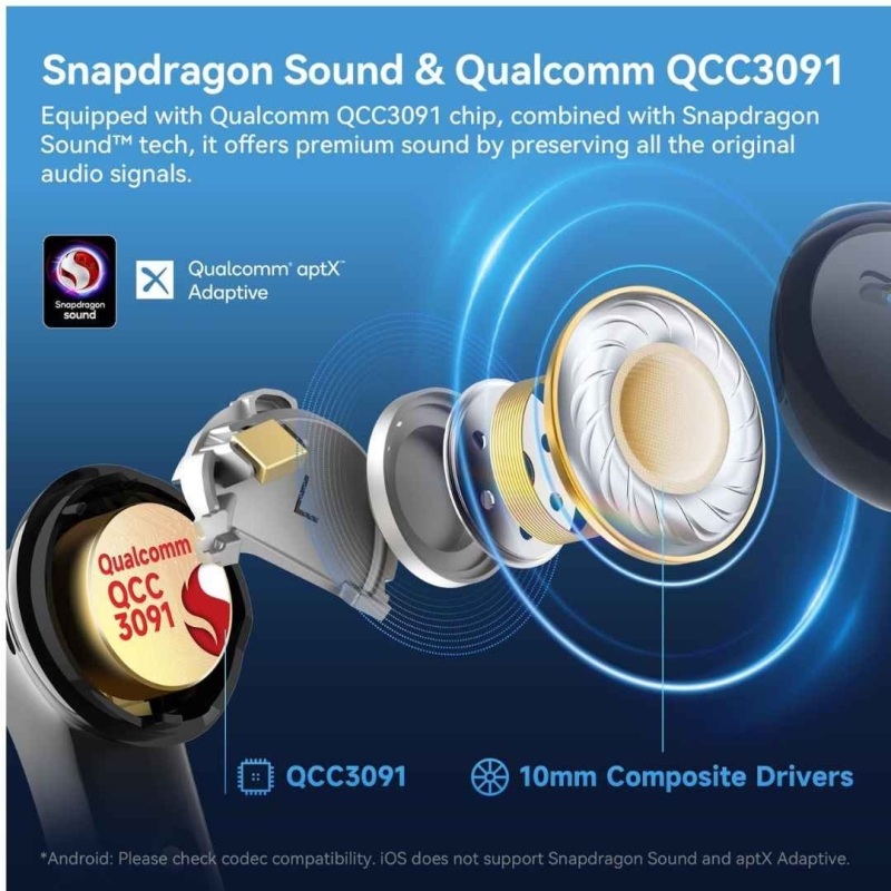 | Special Features | Snapdragon Sound, Auracast, Adaptive ANC, Fast Charging, Hi-Res Audio |