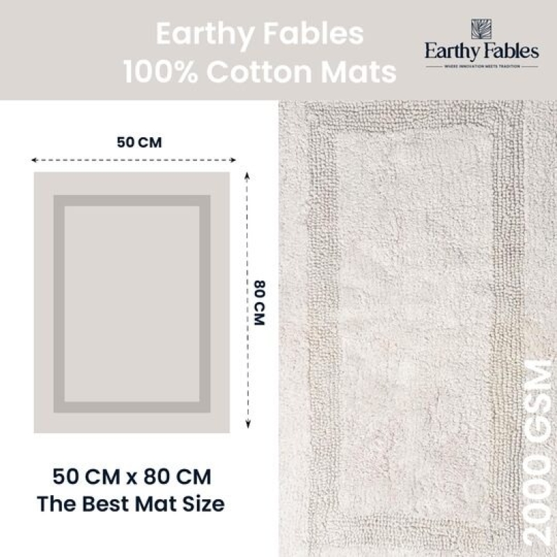 Experience hotel-style luxury at home with the Earthy Fables 100% Cotton 2000 GSM Bath Mat. Made from ultra-soft, highly absorbent cotton with a plush tufted design, this reversible mat offers superior comfort, quick drying, and long-lasting durability. Eco-friendly, machine washable, and crafted with premium stitching, it’s perfect for keeping your bathroom fresh, safe, and stylish every day.