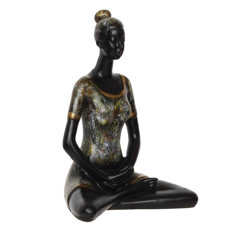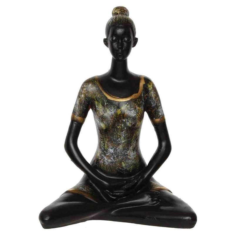 This elegant eCraftIndia resin showpiece features a woman seated in a Padmasana (lotus) yoga pose, symbolizing peace and mindfulness. With fine handcrafted detailing and a soothing grey-black finish, it serves as a beautiful décor piece for homes, offices, or meditation spaces. Perfect as a thoughtful gift for yoga lovers and for enhancing serene interiors.