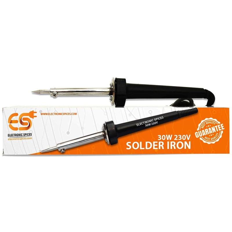 The Electronic Spices 30W Soldering Iron is a heavy-duty, pencil-type soldering tool designed for electronics installation, repairs, DIY projects, and hobby use. It features a durable copper tip, PVC handle, and fast heating performance, making it ideal for students, technicians, and electronics enthusiasts looking for a reliable general-purpose soldering iron.