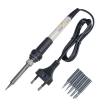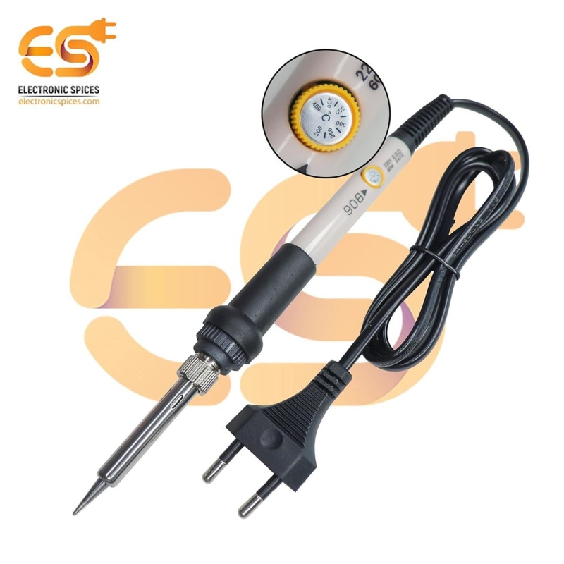 The Electronic Spices SDG45 is a 60W adjustable soldering iron designed for mobile, laptop, and electronics repair. Built with a ceramic heater core, it heats up quickly (around 2 minutes) and offers a temperature range of 200°C to 450°C. The iron-plated tip, stainless-steel build, and non-slip rubber handle ensure durability and safe handling. It comes with 5 extra interchangeable bits, making it ideal for DIY enthusiasts, hobbyists, and professional repair tasks.