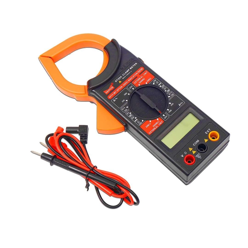 The Electronic Spices DT266 Digital Clamp Multimeter is a reliable, battery-powered measuring instrument designed for accurate electrical testing. It supports high-range AC/DC voltage and AC current measurements, making it suitable for technicians, electricians, and industrial applications. Compact, durable, and CE certified, it ensures safe and efficient diagnostics.