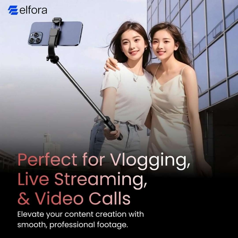 The Elfora Bluetooth Selfie Stick Tripod is a compact, lightweight, and user-friendly accessory designed for effortless photography and videography. Featuring seamless Bluetooth connectivity, a 360° adjustable head, and a sturdy tripod base, it allows you to capture stable, hands-free shots anytime, anywhere. Its portable design makes it perfect for travel, group selfies, vlogging, and everyday use with both Android and iOS smartphones.