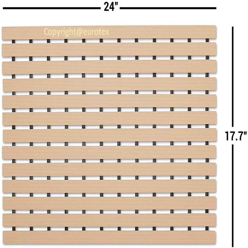 Eurotex Anti-Slip Shower Mat is a high-quality PVC bathroom mat designed with a hooked weave, high-pile texture, and strong rubber backing for superior grip and safety. Crafted from eco-friendly, non-toxic materials, it offers excellent drainage with multiple small holes, making it ideal for wet areas like bathrooms and kitchen washing zones. Waterproof, stain-resistant, and easy to clean, this durable mat provides comfort, stability, and a foot-massage effect while enhancing bathroom safety.