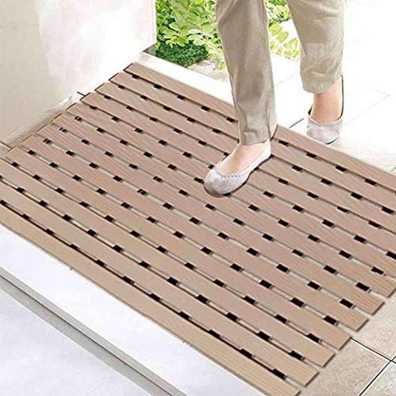 Eurotex Anti-Slip Shower Mat is a high-quality PVC bathroom mat designed with a hooked weave, high-pile texture, and strong rubber backing for superior grip and safety. Crafted from eco-friendly, non-toxic materials, it offers excellent drainage with multiple small holes, making it ideal for wet areas like bathrooms and kitchen washing zones. Waterproof, stain-resistant, and easy to clean, this durable mat provides comfort, stability, and a foot-massage effect while enhancing bathroom safety.