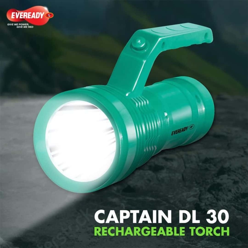 The Eveready DIGILED DL30 Rechargeable Torch is a durable, lightweight torch with a scratch-resistant ABS plastic body available in green and orange. It features a super bright 3W white LED producing 3000 lumens, powered by a lithium-ion battery with overcharge and deep discharge protection. With a runtime of up to 8 hours, two light modes, and an ergonomic handle, this torch is ideal for long-lasting, efficient lighting and easy plug-and-play charging.