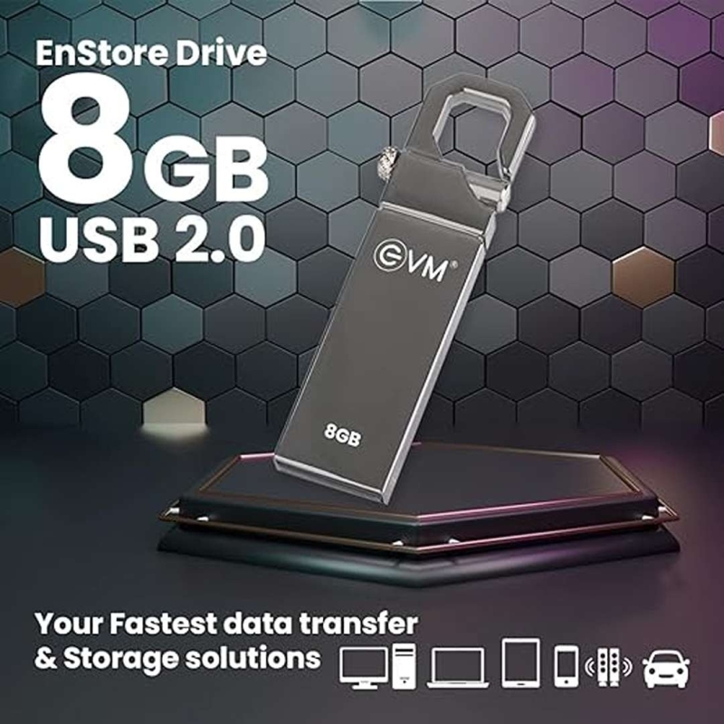 The EVM EnStore 4GB, 8GB,16GB,32GB,64GB,128GB USB 2.0 Pendrive is a compact and reliable storage solution designed for everyday use. With read speeds up to 15MB/s and write speeds up to 8MB/s, it offers smooth data transfer for documents, photos, and multimedia files. Built with a shockproof body and tested for wide temperature tolerance, this drive ensures durability and long-term reliability. Backed by a 10-year warranty, it’s an ideal choice for students, professionals, and anyone needing a dependable portable flash drive.