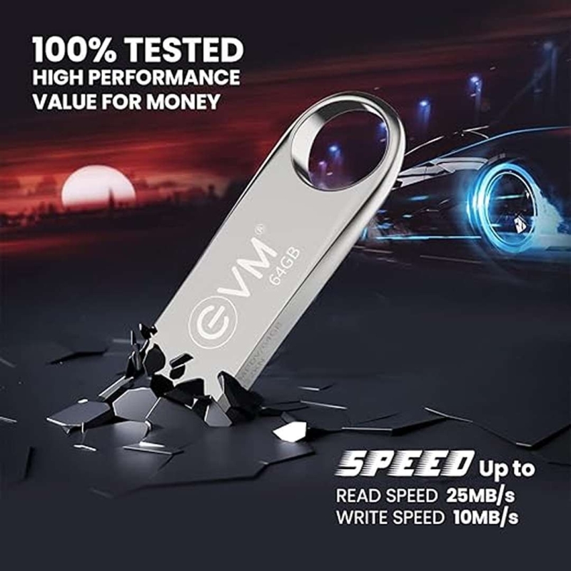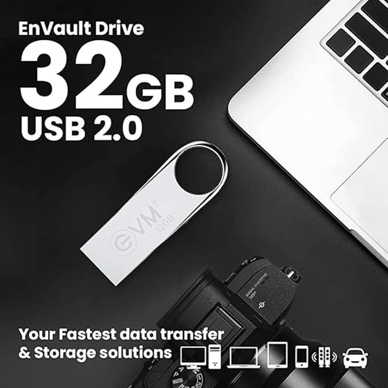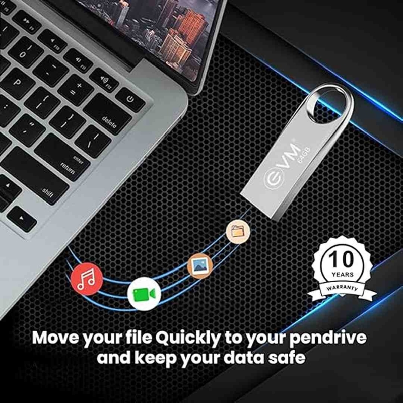 The EVM EnVault Metal 32GB, 64 GB, 128GB USB 2.0 Flash Drive offers reliable performance with read speeds up to 25MB/s and write speeds up to 10MB/s. Built with a durable metallic casing and shockproof design, it ensures secure data storage for everyday use. Compatible with a wide range of devices through its USB 2.0 interface, this compact and sturdy flash drive is ideal for students, professionals, and general-purpose data transfers. Backed by a 10-year warranty, it guarantees long-term dependability.