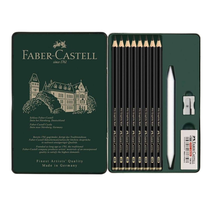 Experience professional-grade graphite drawing with the Faber-Castell Pitt Graphite Matt Pencil Set. Designed for artists, designers, and advanced students, this set features 8 ultra-matt pencils ranging from HB to 14B, delivering maximum tonal density and smooth application for writing, sketching, and monochrome artwork. Includes essential accessories for seamless creative control.
