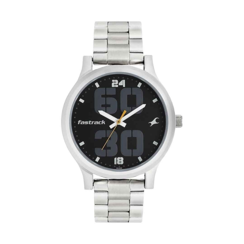 Command attention with the Fastrack Bold NT38051SM07—built for those who like their style loud and confident. Its striking black dial, bold grey Arabic numerals, and an energetic orange second hand create a powerful visual contrast. The solid stainless steel oyster-style strap adds a classic, durable edge, making this watch both stylish and sturdy. With its standout design and reliable quartz movement, this timepiece is perfect for anyone who wants to make a bold statement.