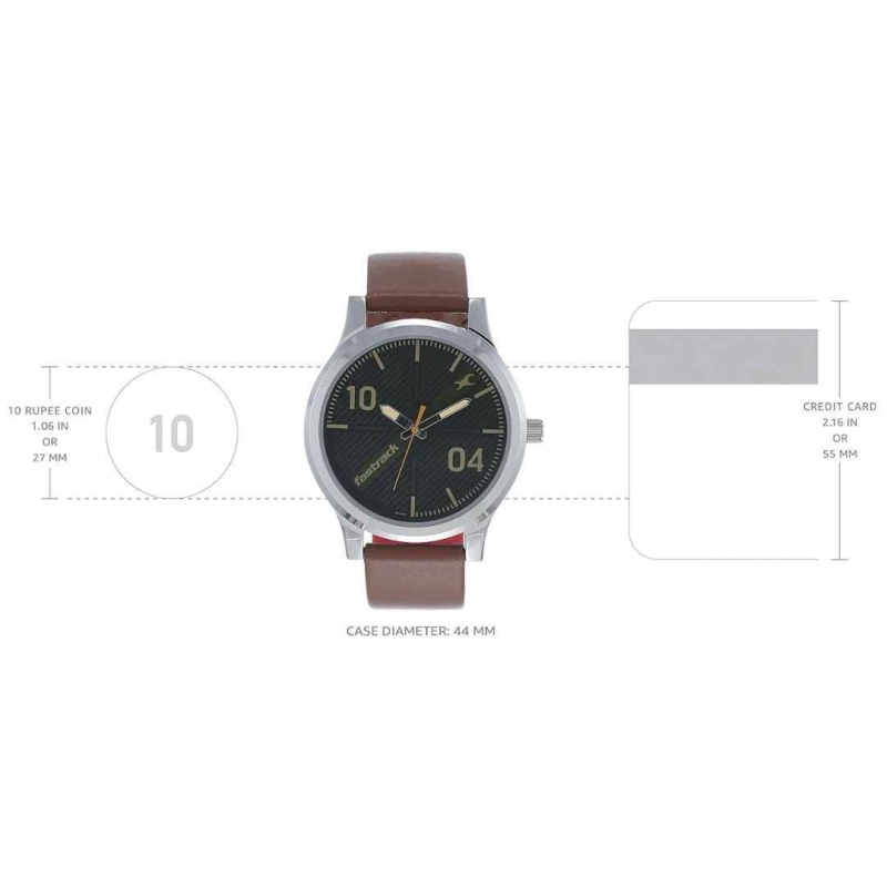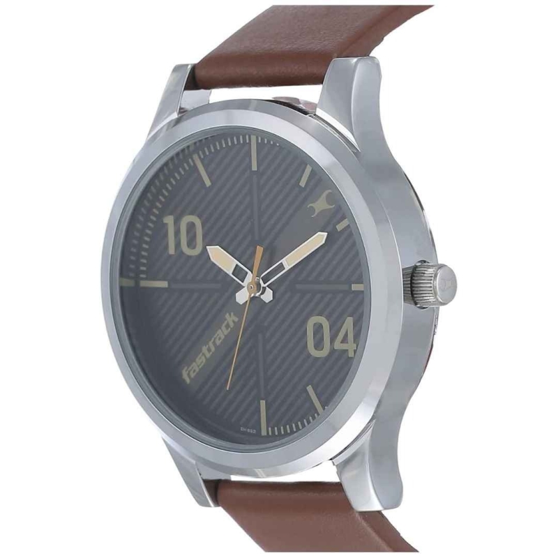 The Fastrack NR38051SL02 from the "Fundamentals” collection blends classic charm with modern identity. Featuring a textured striped black dial with unique markers at 10 and 04, this watch stands out with its striking yet subtle design. The rich brown leather strap adds everyday comfort, while its 5 ATM water resistance makes it perfect for daily wear. With reliable quartz movement and a 24-month warranty, this watch is built for confidence and style.