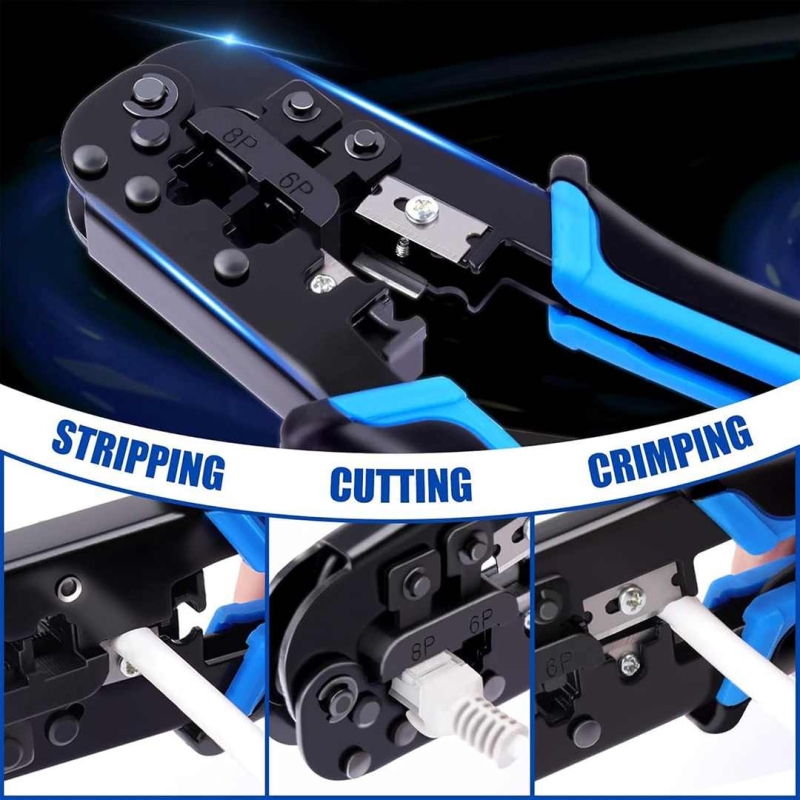 The FEDUS Ethernet Crimping Tool is a durable, all-in-one network tool designed for cutting, stripping, and crimping RJ45, RJ11, RJ12, and RJ22 connectors. Built with a sturdy alloy-steel body and ergonomic grip, it ensures precise termination of Cat5, Cat5e, and Cat6 cables. Ideal for both professionals and DIY users, it includes a bonus pack of 10 Cat6 RJ45 connectors for immediate use.