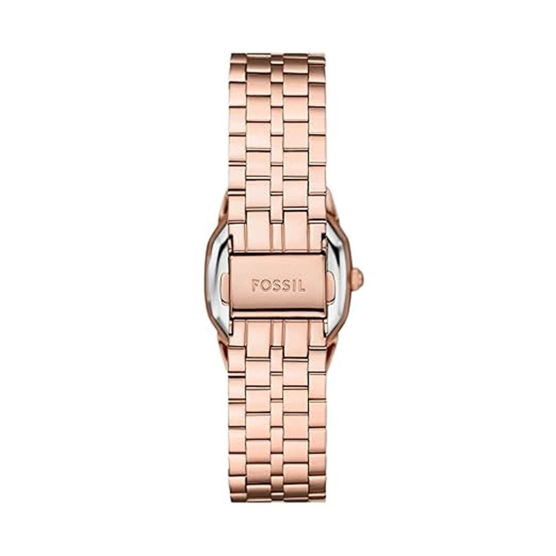 The Fossil ES5386 Harlow Women's Watch features a sleek rose gold stainless steel bracelet and a rectangular stainless steel case with a soft off-white dial. Powered by a reliable quartz movement, this stylish timepiece offers water resistance up to 30 meters and comes with a 2-year manufacturer warranty, making it a perfect blend of elegance and everyday practicality.