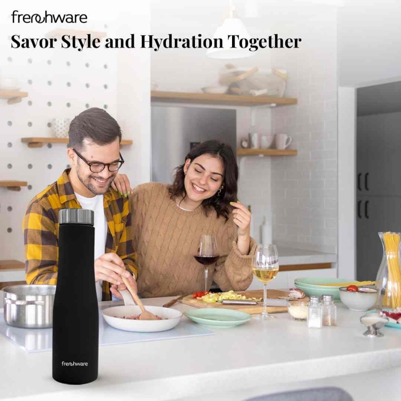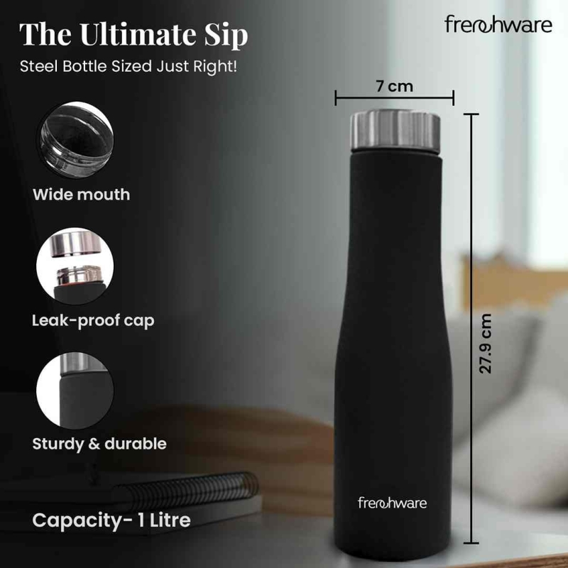 The Frenchware 1L Shadow Black Stainless Steel Bottle is designed for durability, performance, and everyday convenience. Made from premium 202-grade vacuum-insulated stainless steel, it keeps beverages hot or cold for hours while offering excellent rust resistance. With its leakproof screw cap, double-wall construction, and 3x powder-coated matte finish, this bottle is perfect for coffee, tea, and water. BPA-free, non-corrosive, and easy to carry, it’s ideal for kids and adults at school, work, travel, or outdoors.