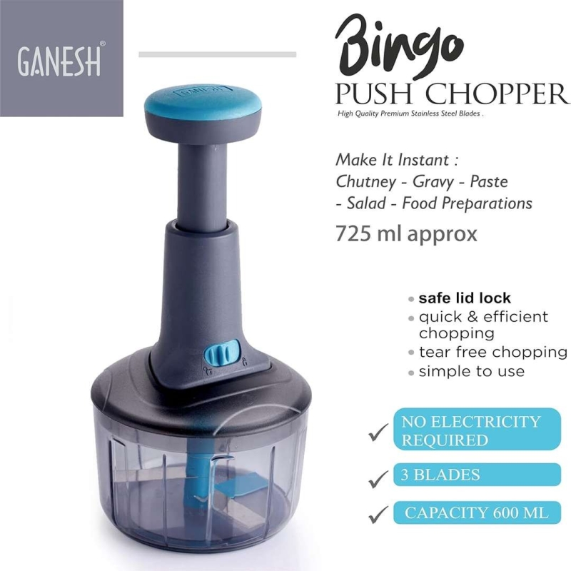 The Ganesh RKH-200 Manual Chopper is a compact and efficient solution for chopping, grinding, and mincing vegetables and more. Made from durable plastic with sharp stainless steel blades, this dishwasher-safe chopper is easy to use and clean—ideal for everyday kitchen needs.
