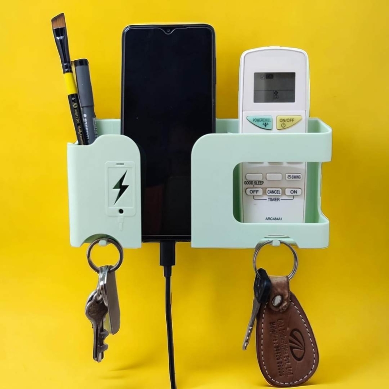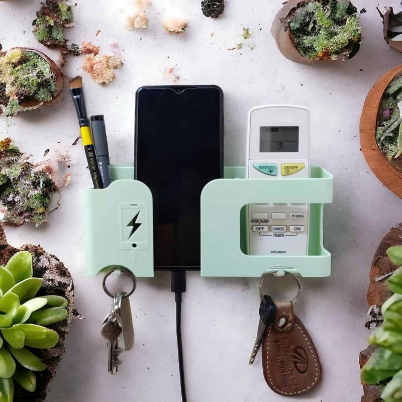 The GEOCARTER Wall Mount Mobile Holder (Green) is a versatile and space-saving organizer designed for modern homes and offices. Made from durable, lightweight polypropylene with a polished finish, it functions as a mobile charging holder, AC/TV remote stand, and small gadget organizer. Easy to install and stylish in design, it keeps your essentials secure, organized, and within easy reach.
