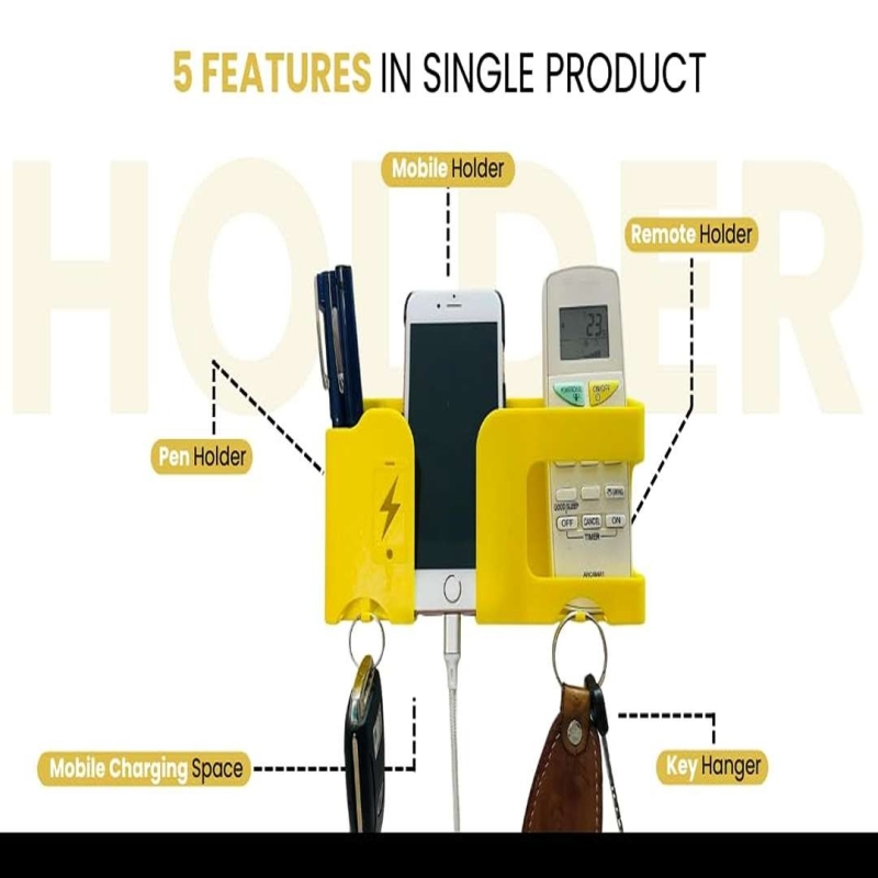 The GEOCARTER Wall Mount Mobile Holder (Yellow) is a versatile and space-saving organizer designed for convenient mobile charging and gadget storage. Made from durable, lightweight polypropylene with a polished finish, it securely holds smartphones, remotes, and small accessories. Easy to install and stylish in design, it’s ideal for use in homes, offices, kitchens, bathrooms, and even vehicles